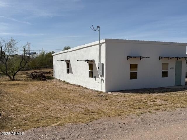 Close to Wickenburg & the Valley! WATER & POWER! NEW ROOF/NEW STUCCO/ NEW WINDOWS/NEW DOORS/ NEW CABINETS are READY TO INSTALL. Unfinished, Cute little home in need of addt. repairs. SEPTIC needs repair. Seller may Finance. Sold As Is.